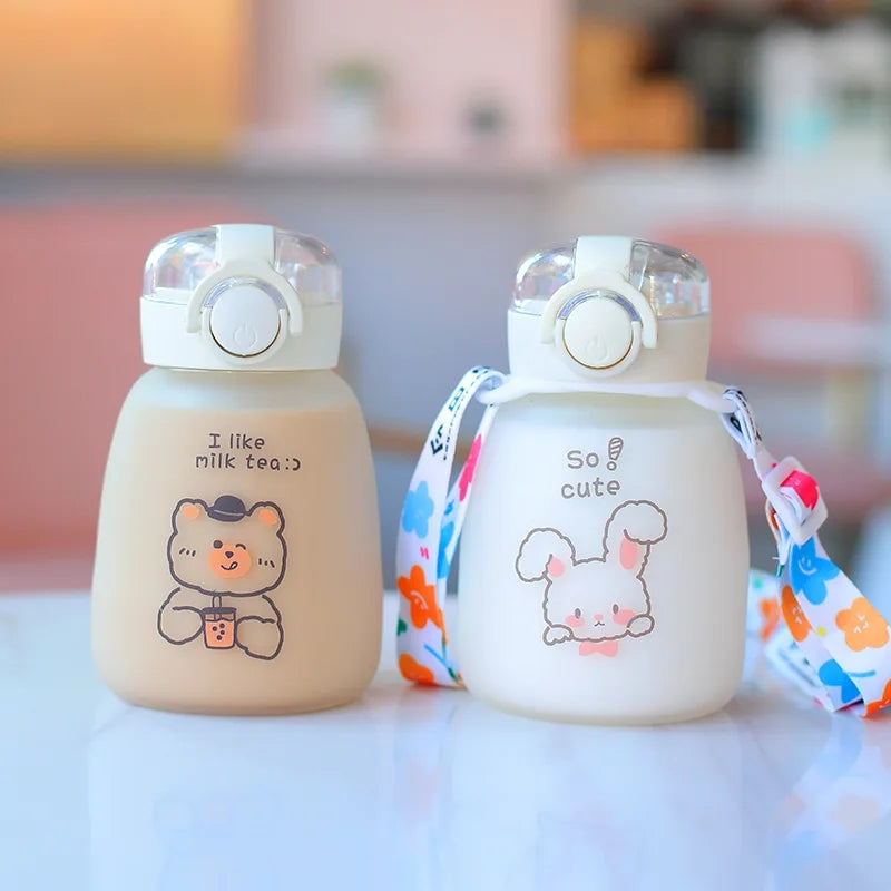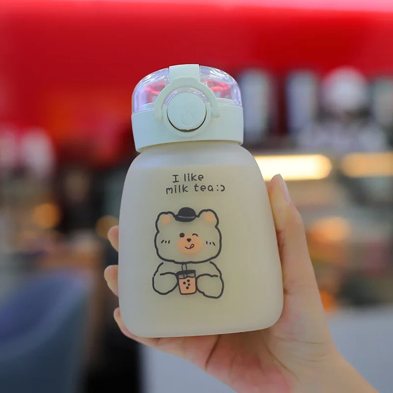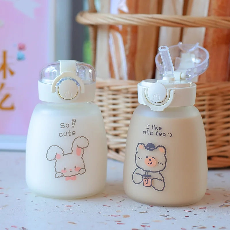 Kids Cartoon Glass Water Bottle Mug Animal School Drinking Water Straw Cup Gravity Ball Straw Thermos Bottle