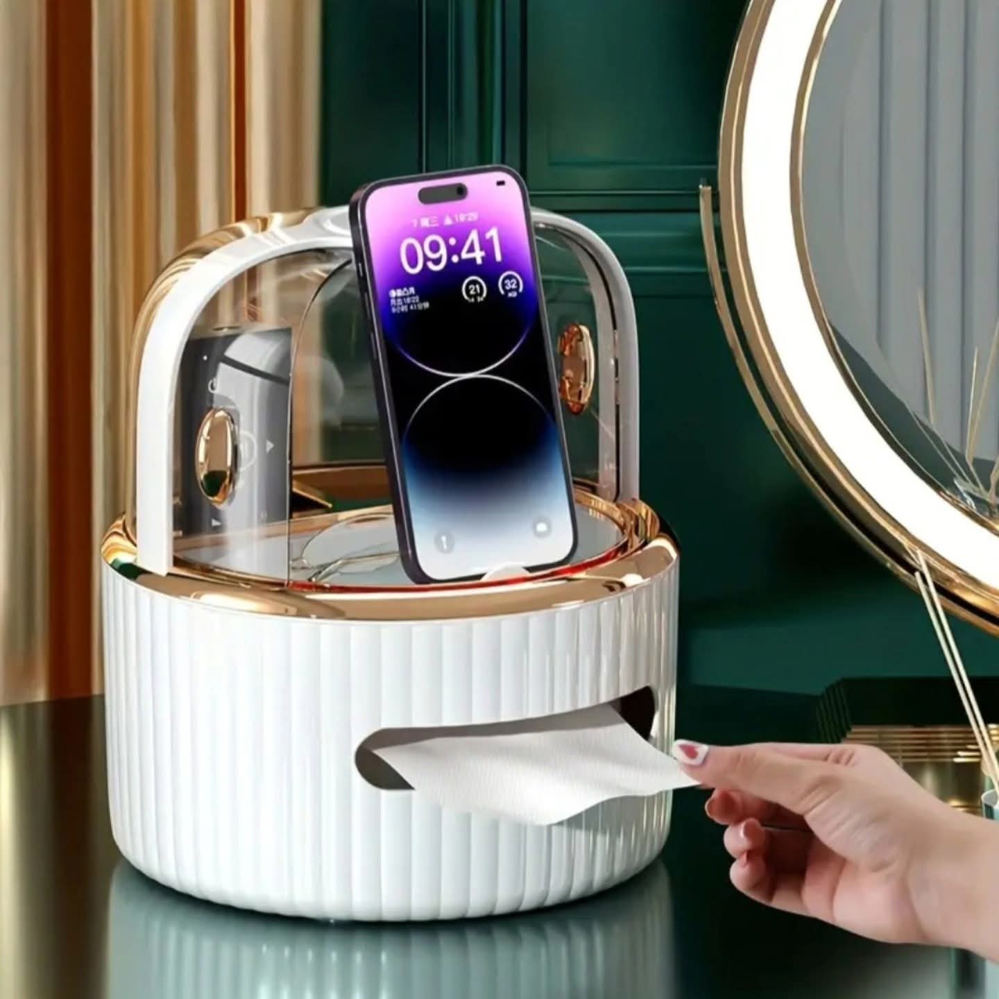 Multi-functional Desktop Tissue Box Organizers With Storage Compartments.