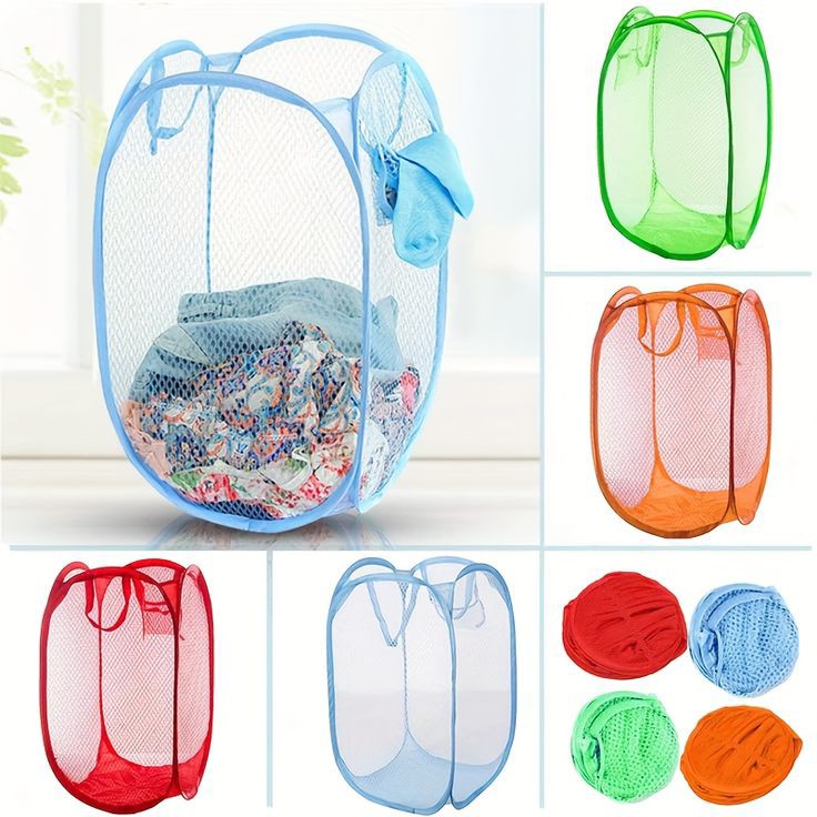 Folding Laundry Storage Basket Household Dirty Clothes Bag Light Nylon Mesh Color Net Laundry Basket Sundries Organization