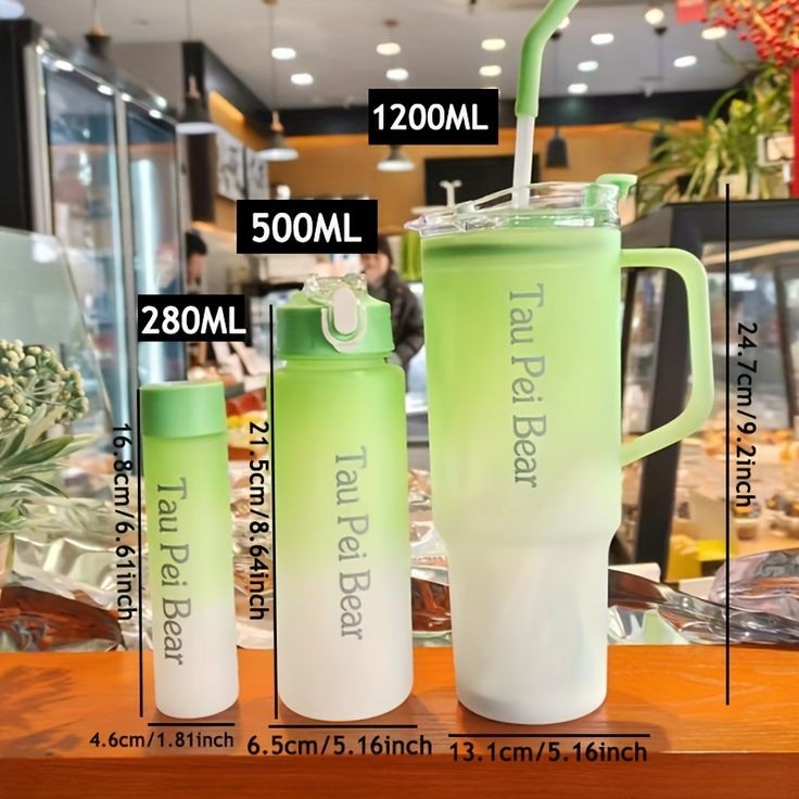 🔸One large 1.2 liter with straw, 800ml tight seal lid with clip, and a smaller 300ml screw top container.