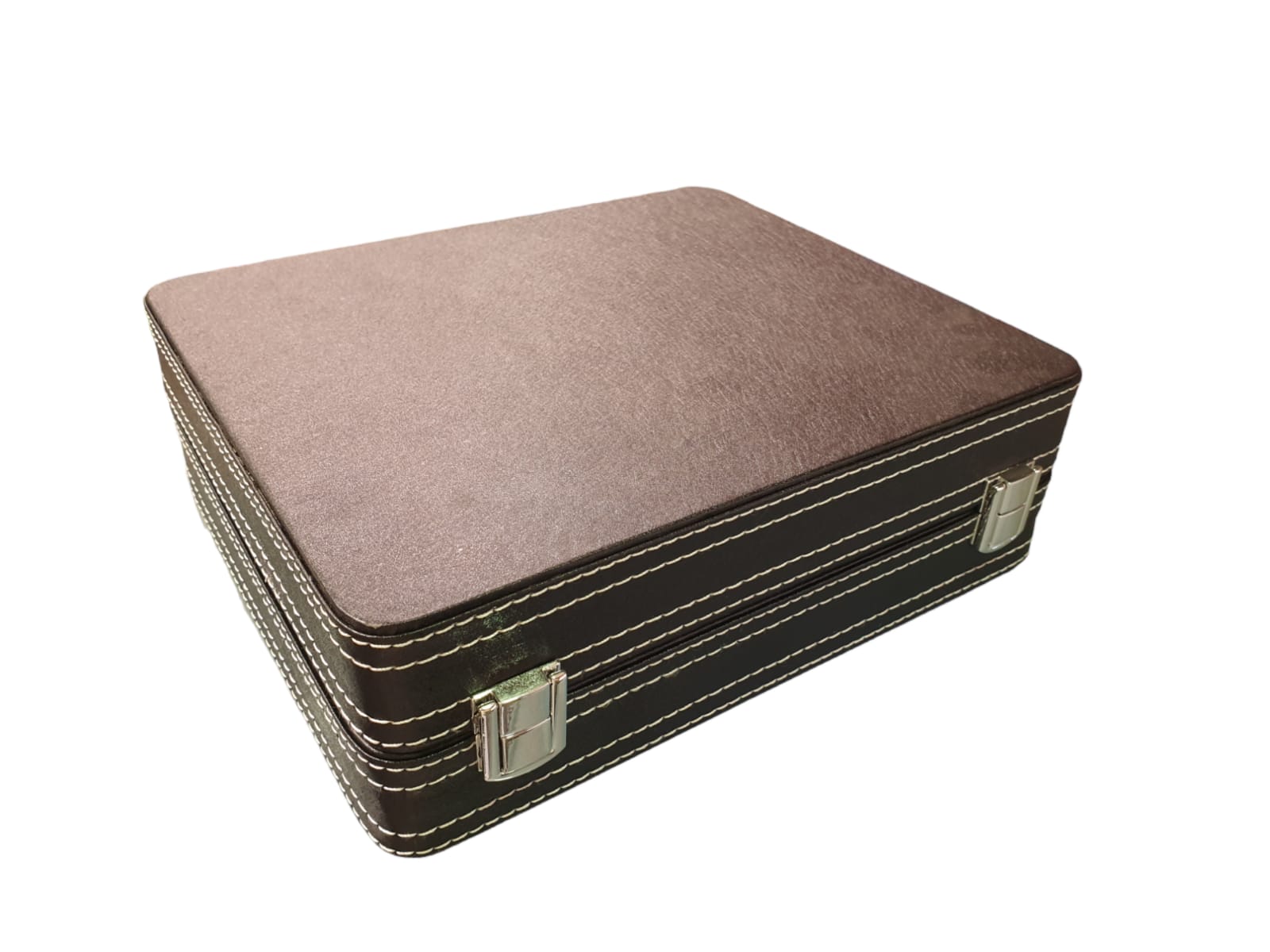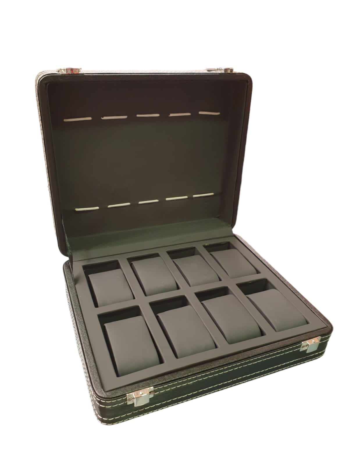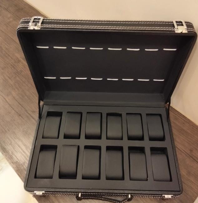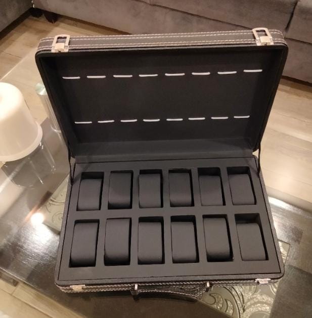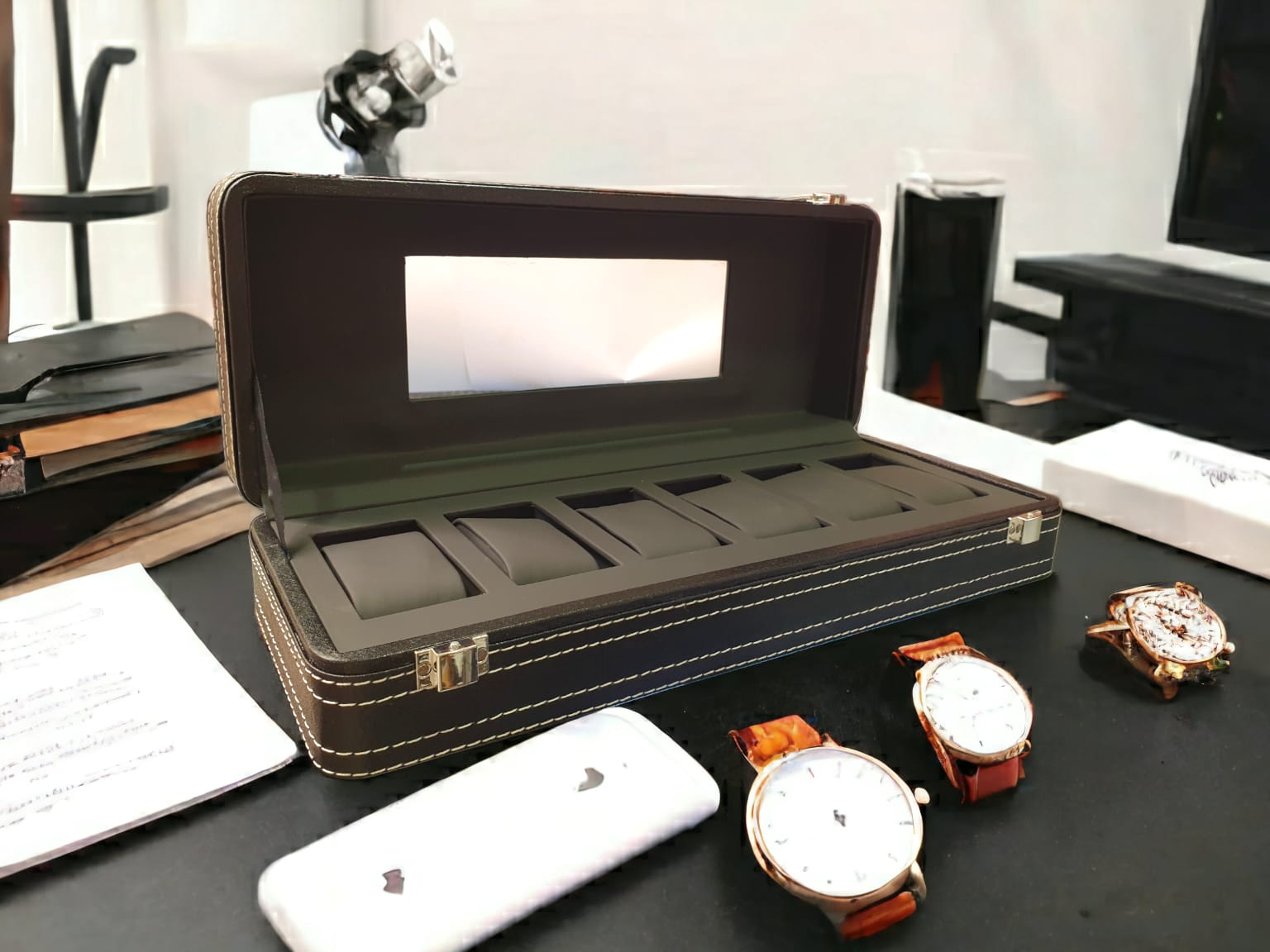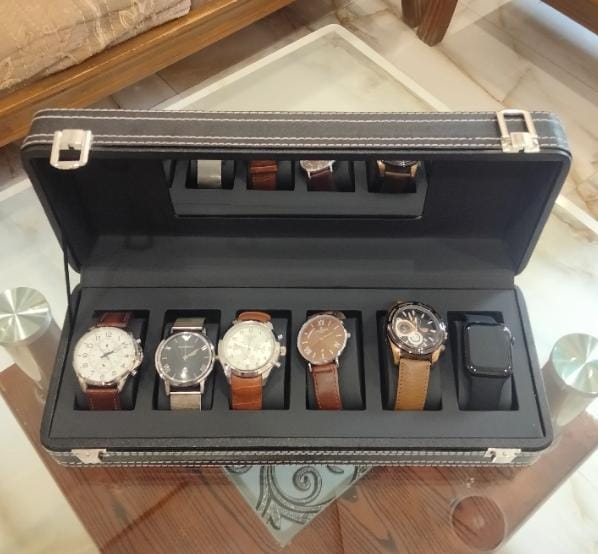 Premium quality watch organizer in wooden and faux leather material. Smooth grids inside the box with a beautiful wooden grids.