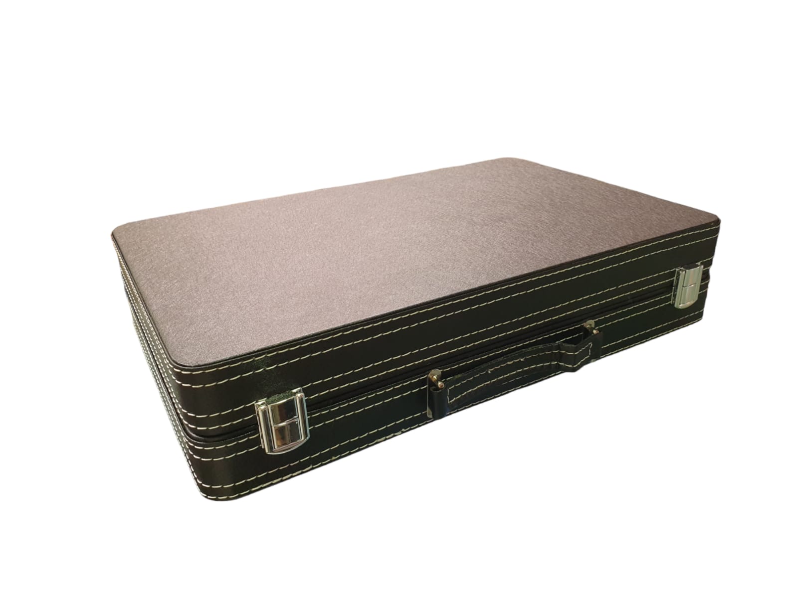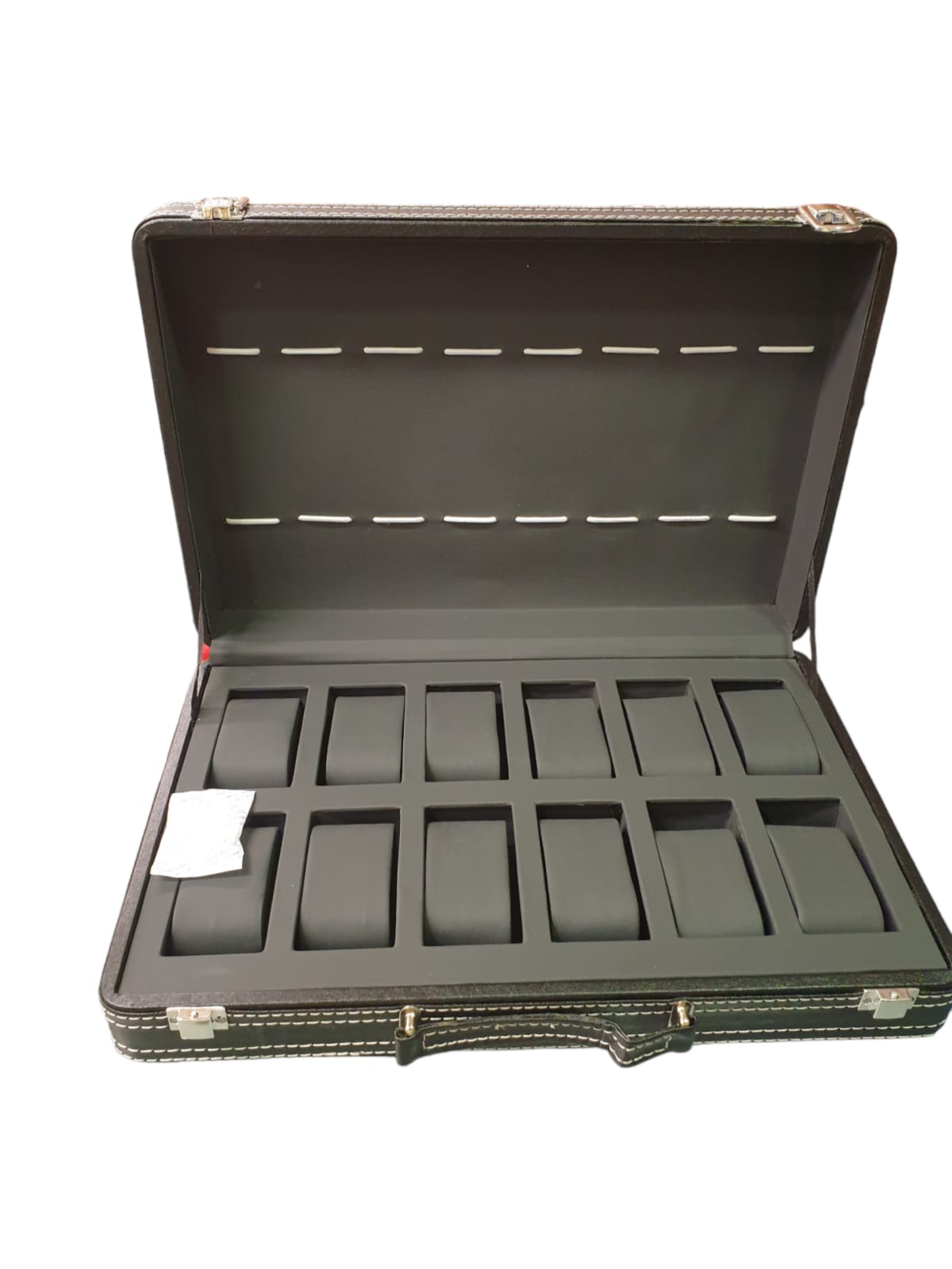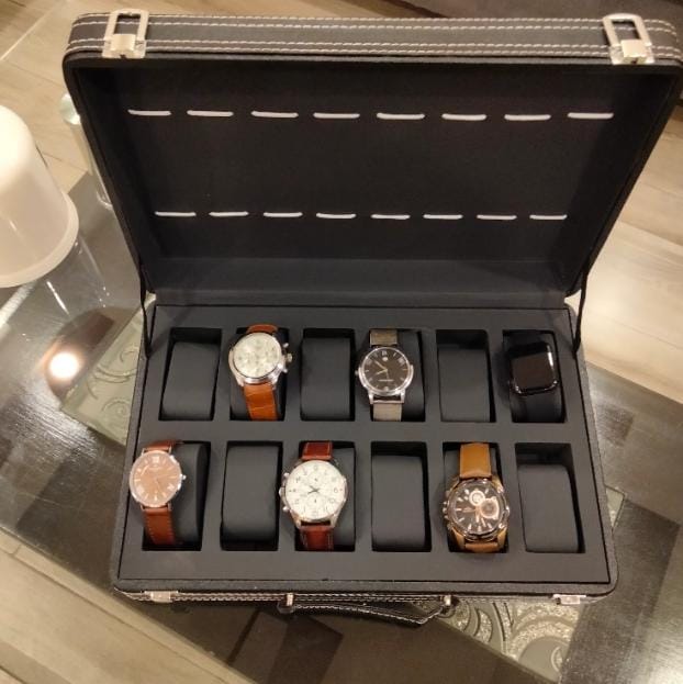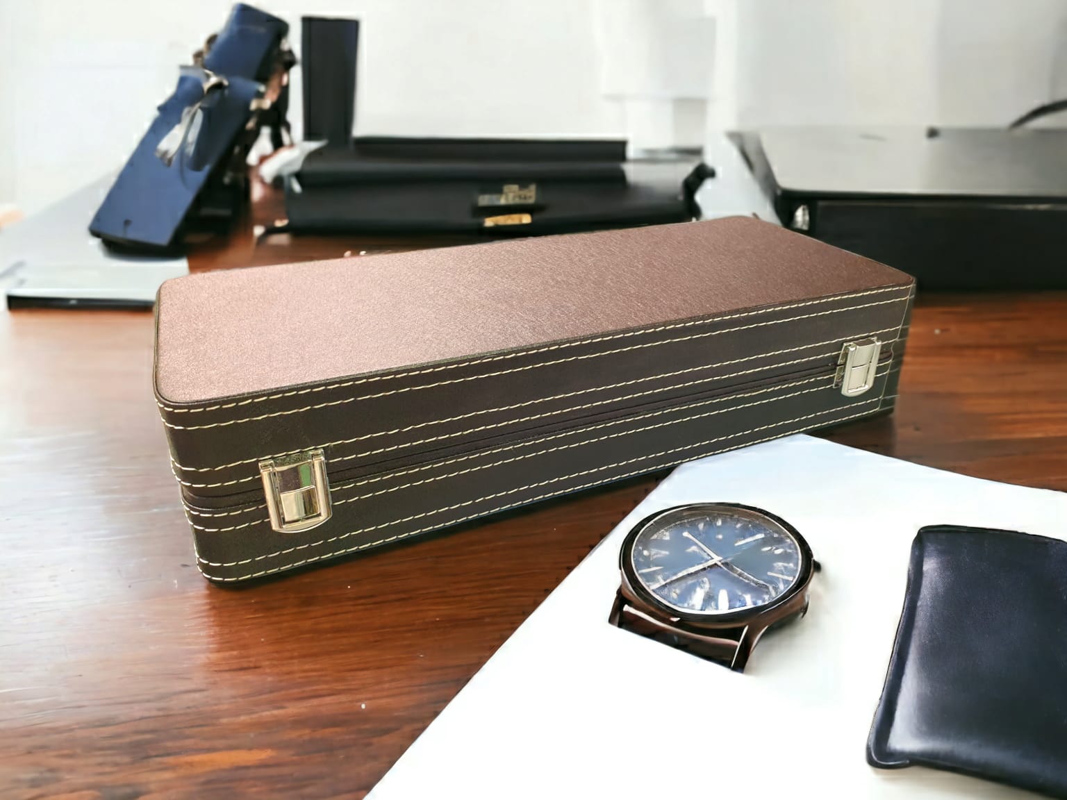 Premium quality watch organizer in wooden and faux leather material. Smooth grids inside the box with a beautiful wooden grids.