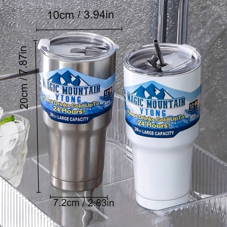 Introducing Seren, your go-to tumbler for all-day hydration! This 900ml stainless steel tumbler keeps your beverages hot or cold for hours, perfect for coffee, tea, or iced drinks. Complete with leak-proof lids and straws, Seren combines durability with style for the ultimate sipping experience. Stay refreshed wherever you go with Seren.