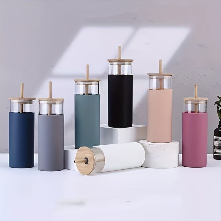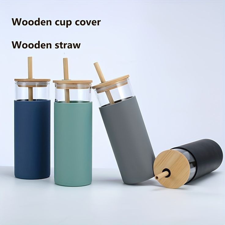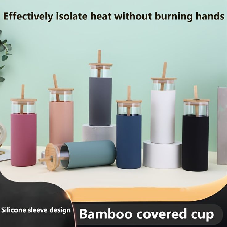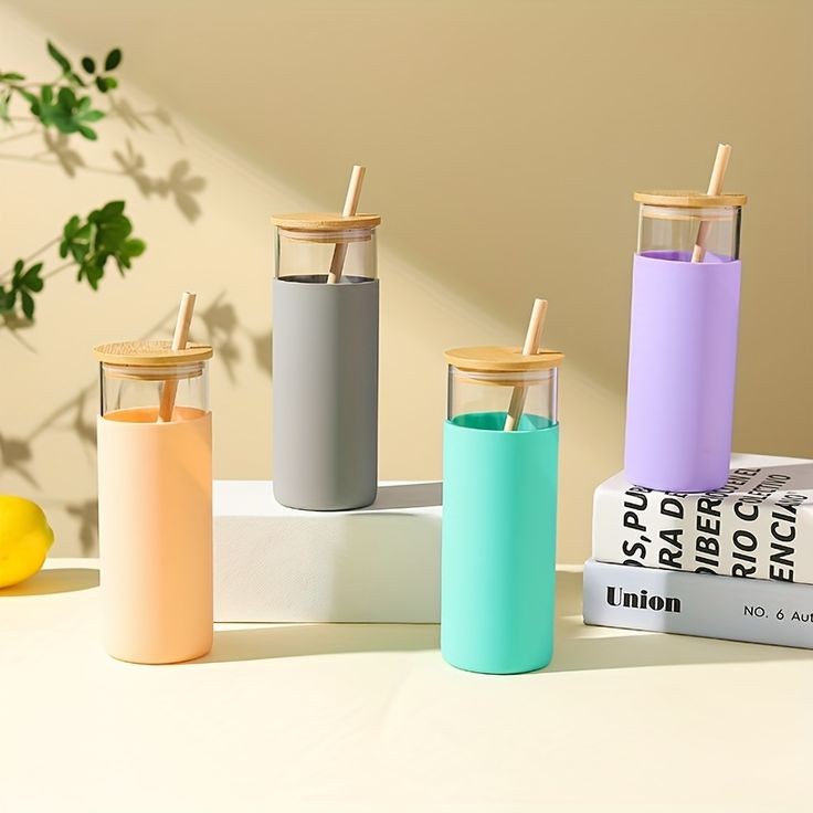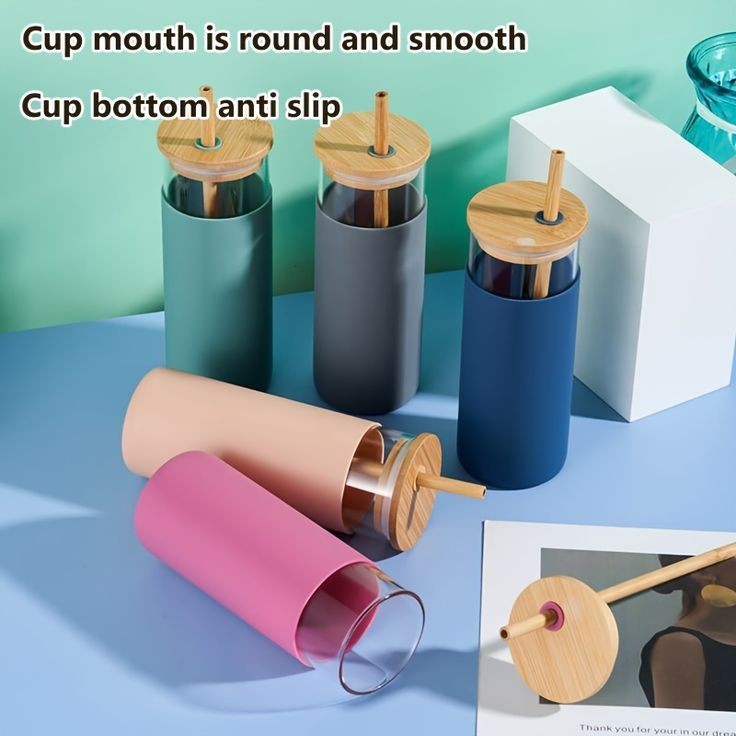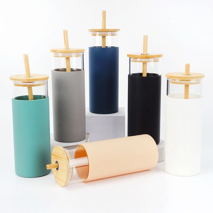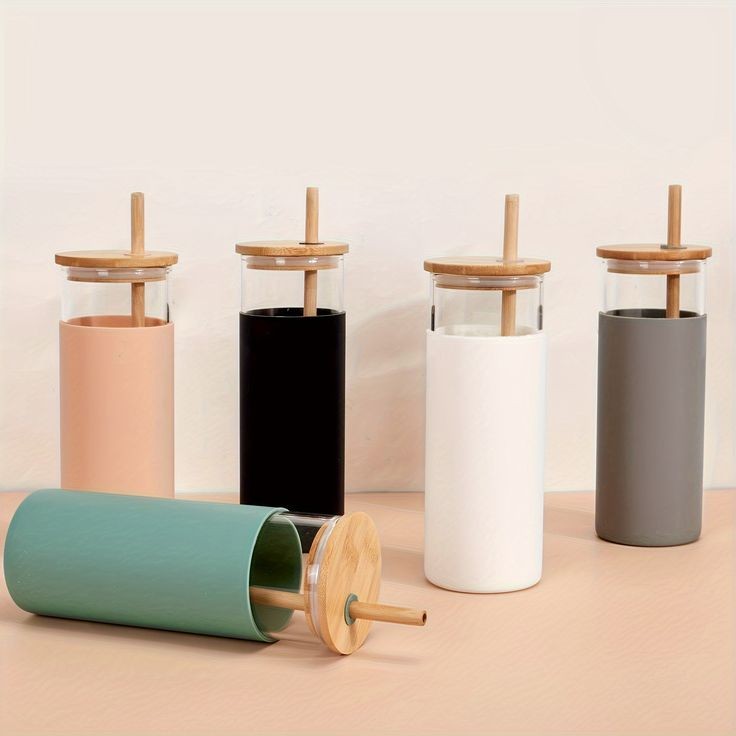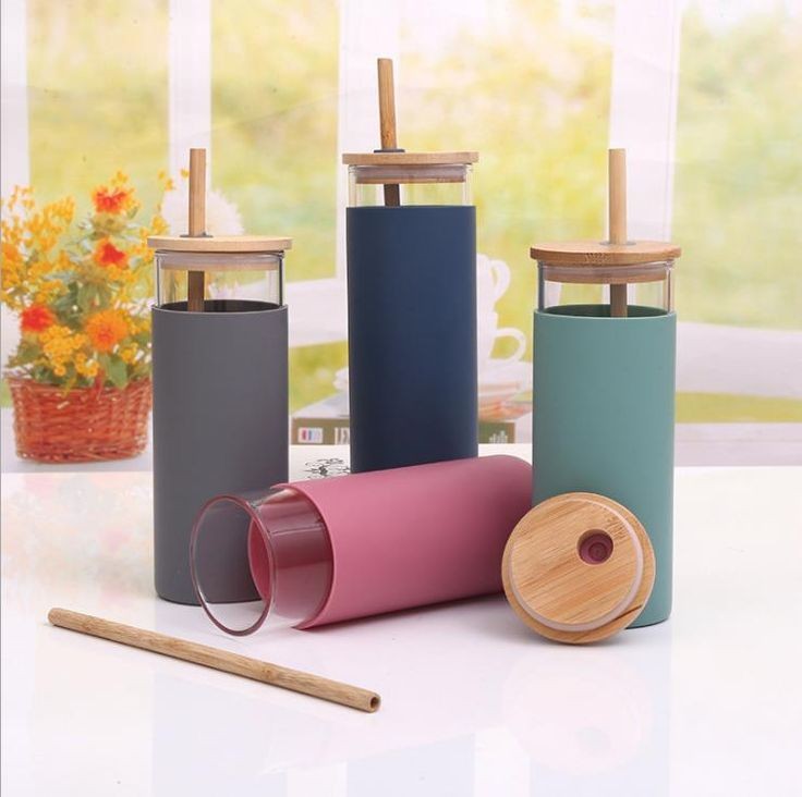 16oz Glass Tumbler Glass Water Bottle Straw Silicone Protective Sleeve Bamboo Lid Bpa Free Drink Bottle