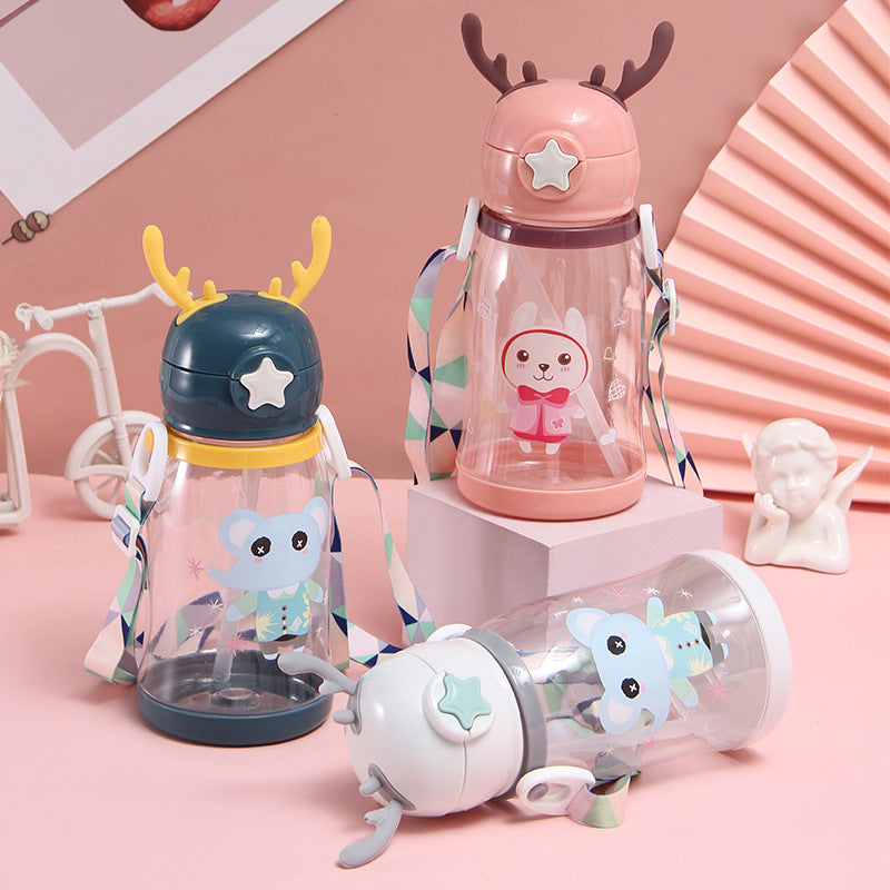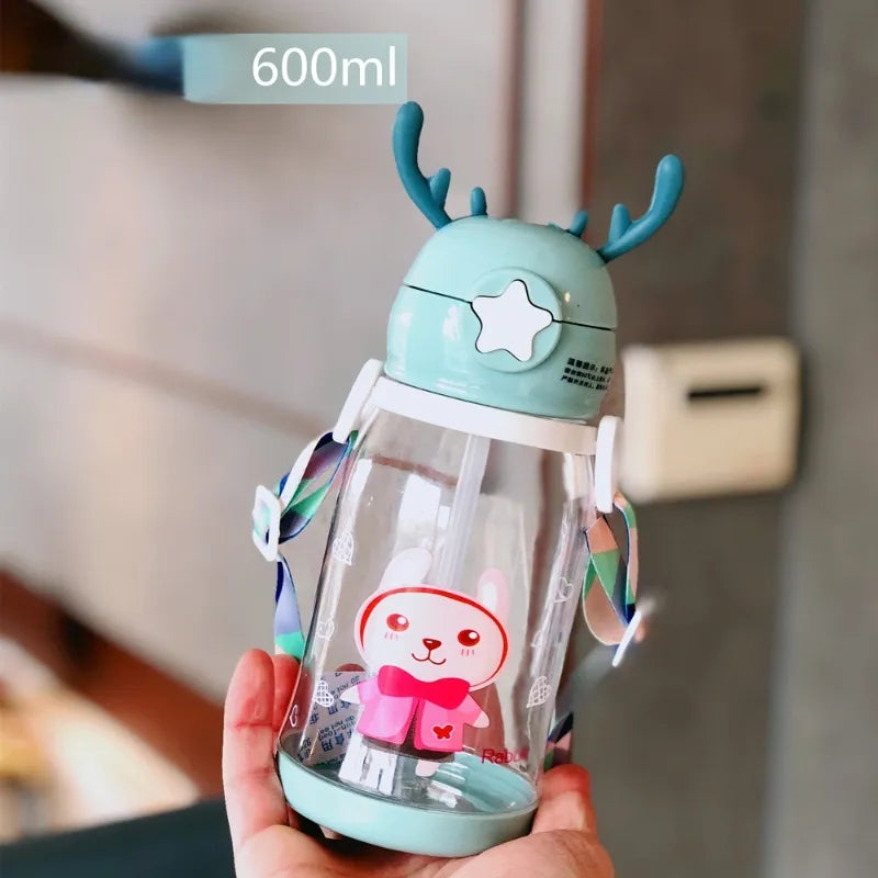 600ml Eco-friendly Straw Bottle Transparent Dust-proof Creative Clear Straw Bottle Student Water Cup