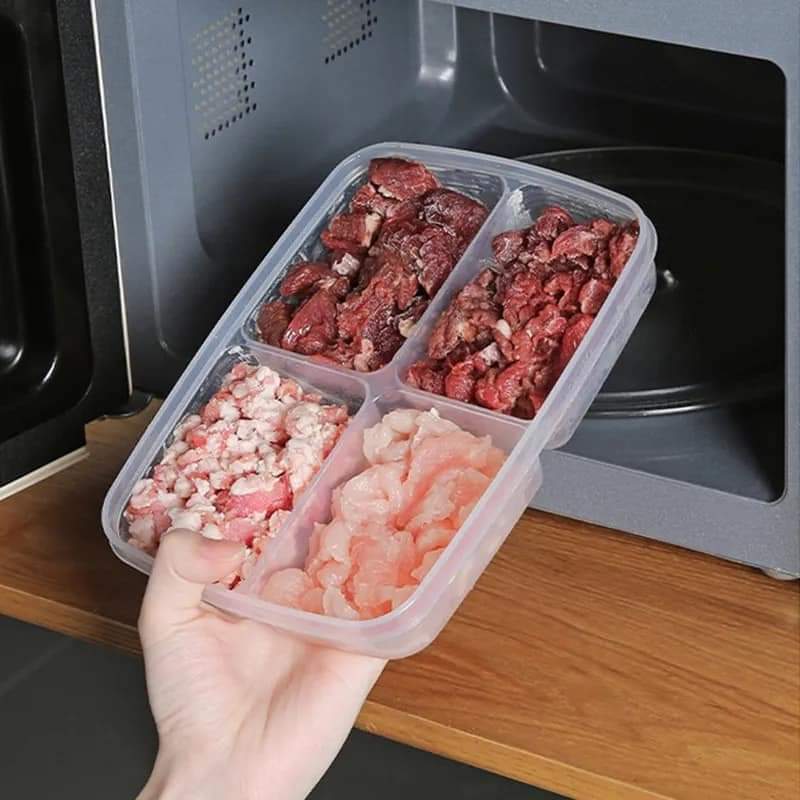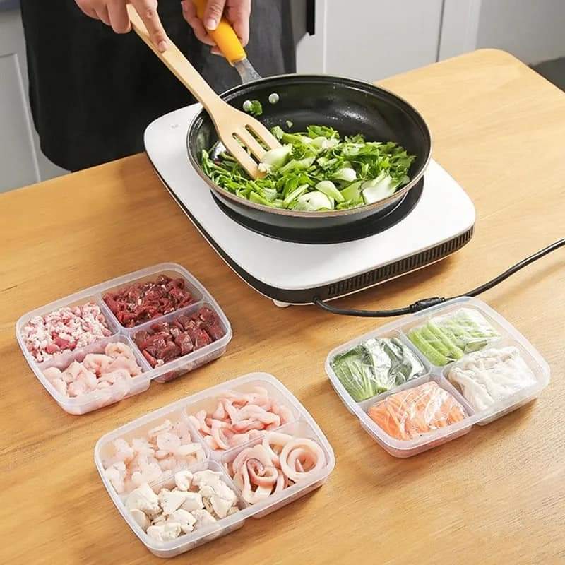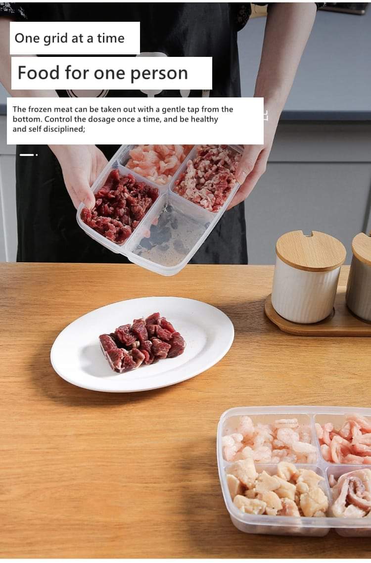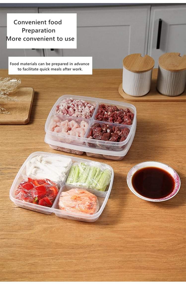 4 Grids Food Preparation Storage Box Compartment Refrigerator Freezer Organizers Sub-Packed Meat Onion Ginger Dishes Crisper