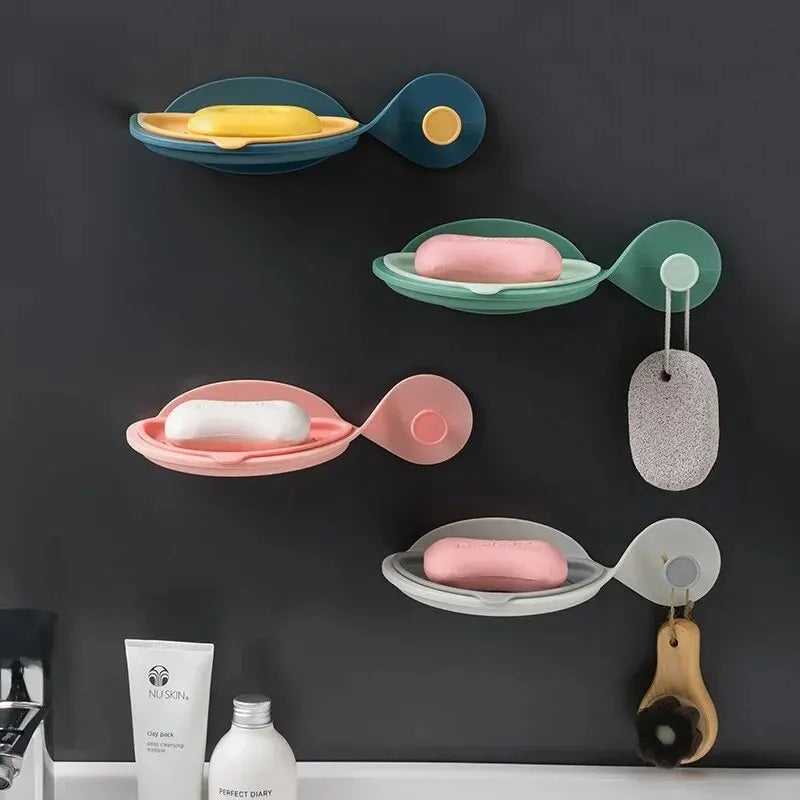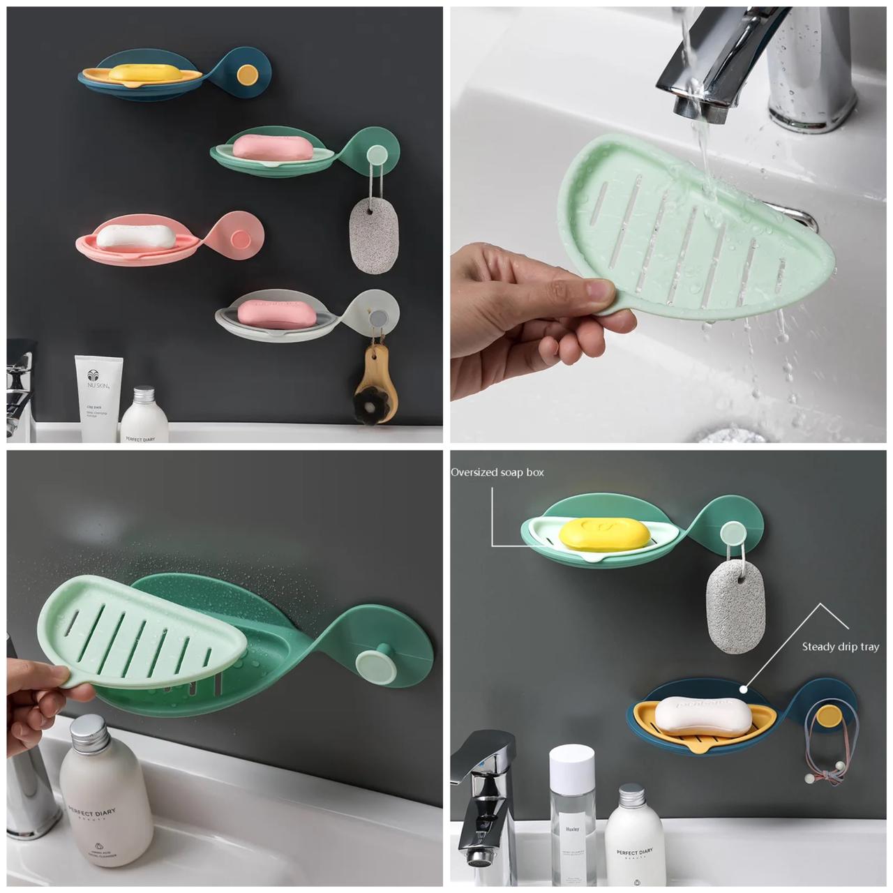 This adhesive soap holder is designed with tilt angle, the water can easily flow out.