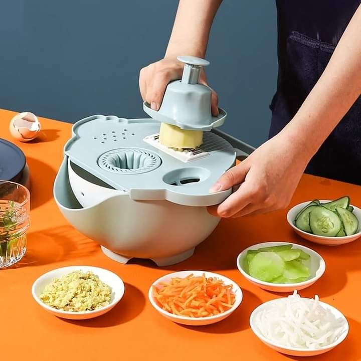 Functions : shred, slice, grind ginger, cut flowers, drain and wash vegetables, beat the skin, separate egg whites, squeeze juice, mobile phone holder (can be used as a fruit plate alone).