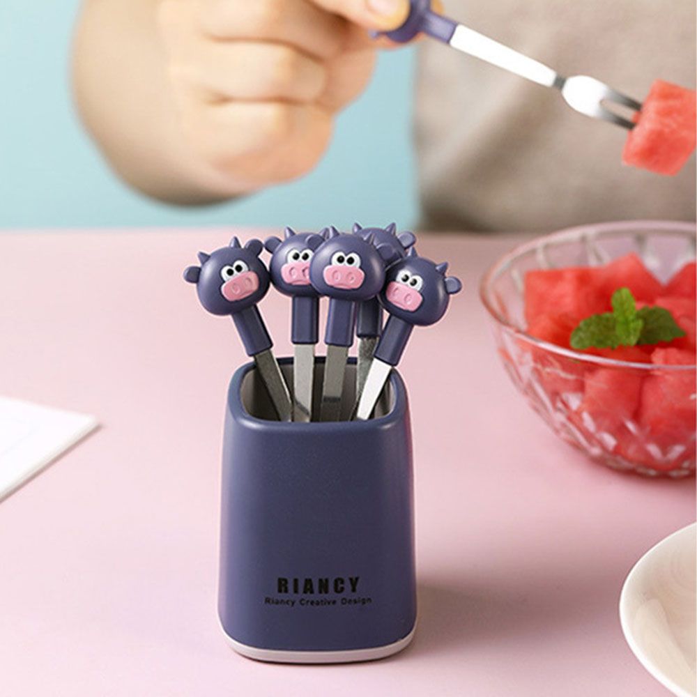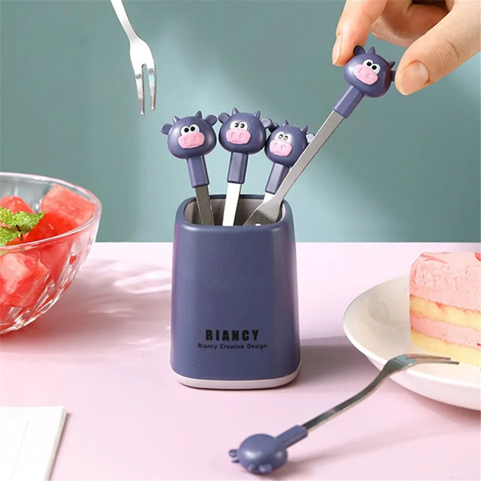 Cartoon Style Fork's With Holder (6pcs forks set)