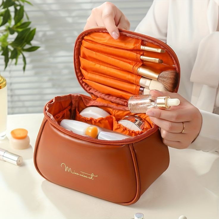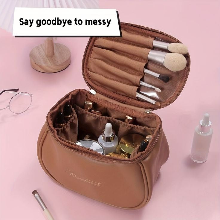 Large capacity toiletries and cosmetics storage bag Large opening for easy access, metal double zipper