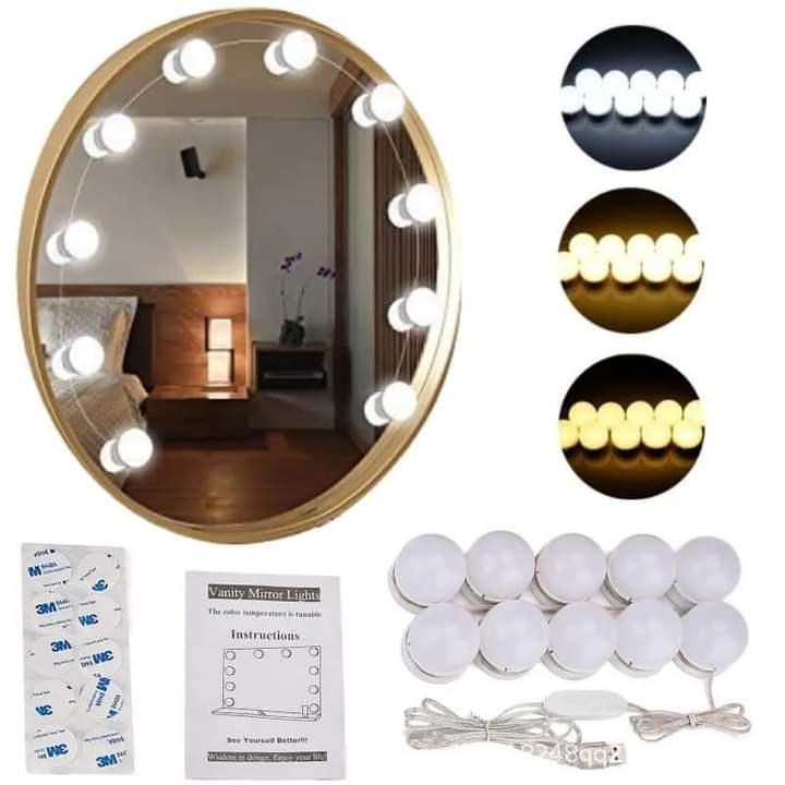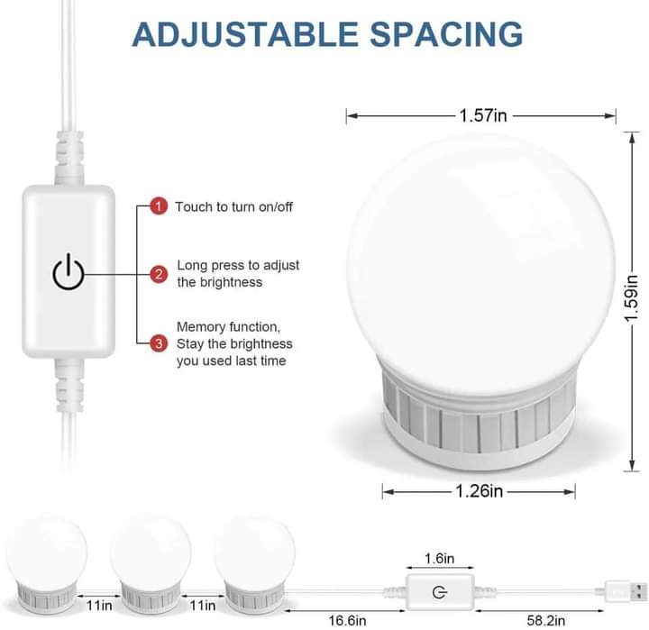 【3 Color Modes】Vanity lights for mirror by professional makeup artists, with 3 modes, cold white, natural white and warm white options meet your different needs in different occasion.This vanity mirror lights are provided with 10 levels of brightness.
