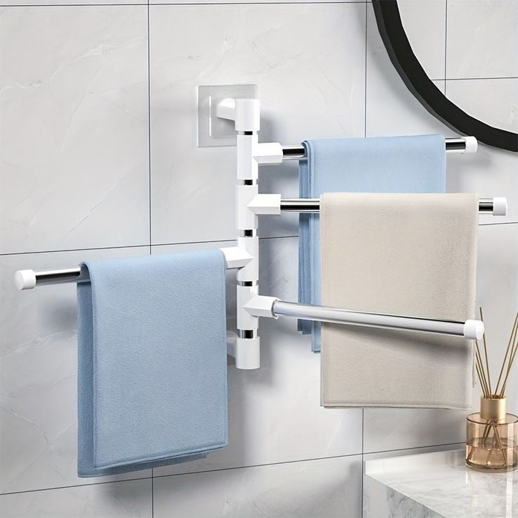 ROTATES 180°- Multiple swivel arms of towel racks allows you to spread out the desired arms for easy drying, and swivel them back against the wall to save space..