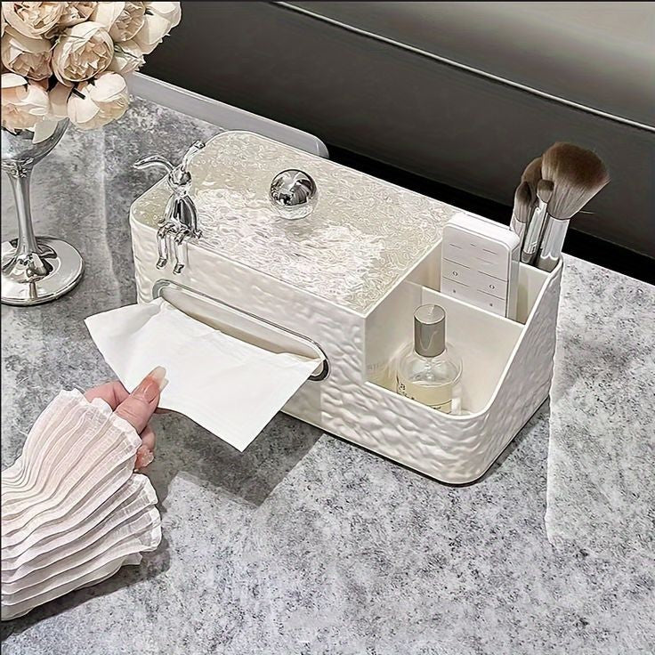 Exquisite Appearance : The tissue box holder showcases an exquisite appearance design that adds an artistic atmosphere to your home. Its unique water wave texture embellishes your space with style, while the thickened ABS ensures durability and longevity.